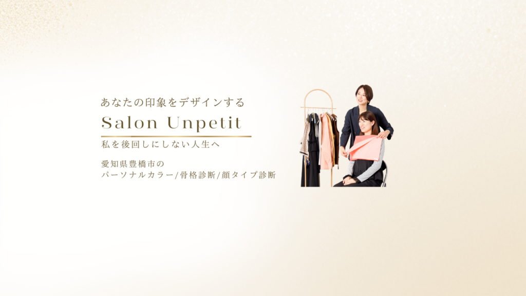 愛知県豊橋市にあるsalon unpetit(サロンアンプティ)では、そんな悩みを解決するためパーソナルカラー診断、 骨格診断、顔タイプ診断、メイクアドバイスを行なっています。